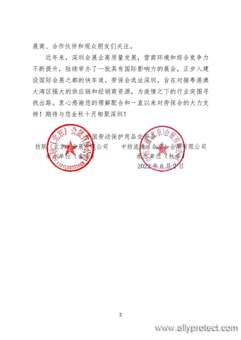 近年來,深圳會展業(yè)高質(zhì)量發(fā)展,營商環(huán)境和綜合競爭力不斷提升,陸續(xù)舉辦了一批具有國際影響力的展會,正步入建設(shè)國際會展之都的快車道。勞保會選址深圳,旨在對接粵港澳大灣區(qū)強(qiáng)大的供應(yīng)鏈和經(jīng)銷商資源,為疫情之下的行業(yè)突圍尋找出路。衷心感謝您的理解配合和一直以來對勞保會的大力支持!期待與您金秋十月相聚深圳!