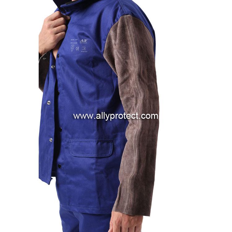 AP-2530 藍色阻燃布配炭啡色皮袖焊服