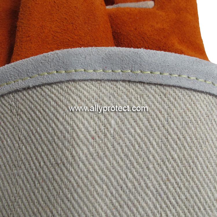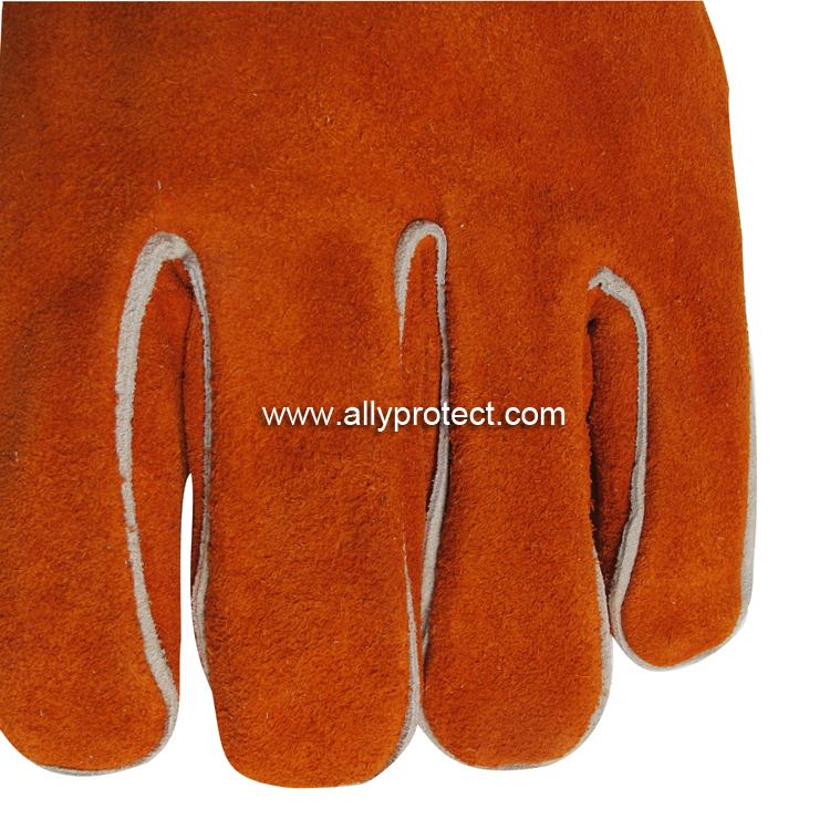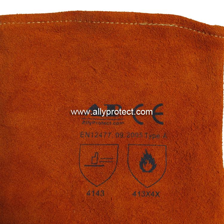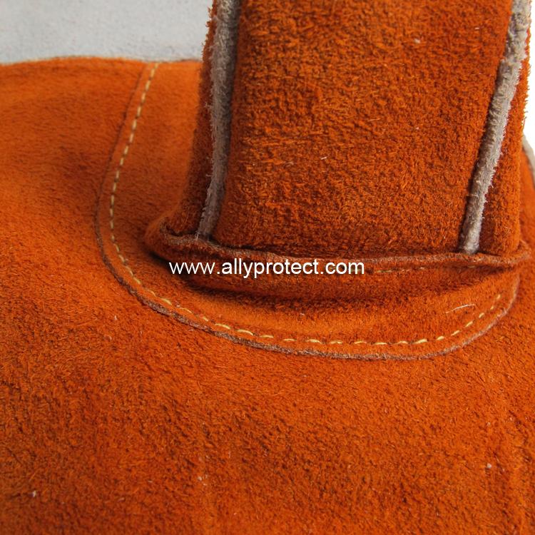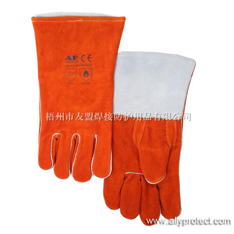 • 產(chǎn)品描述: [ AP ]銹橙色牛二層皮全皮電焊手套,直拇指護(hù)縫設(shè)計,適用于焊接、切割及搬運(yùn)等用途。